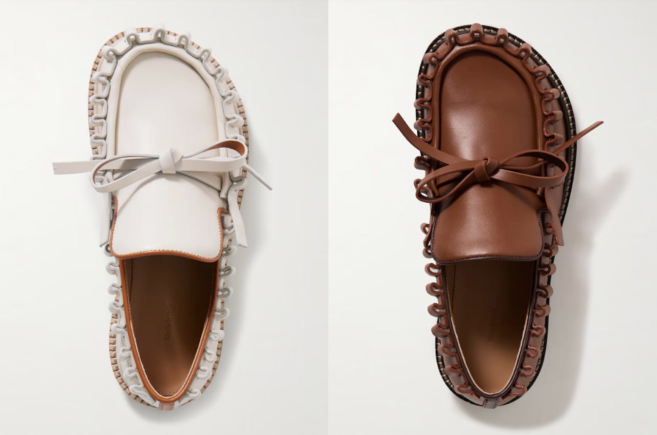 - More loafer envy after last week’s Bottega’s, with JW Anderson and these ruffled leather loafers in brown (more sizes here) and white (more sizes here).