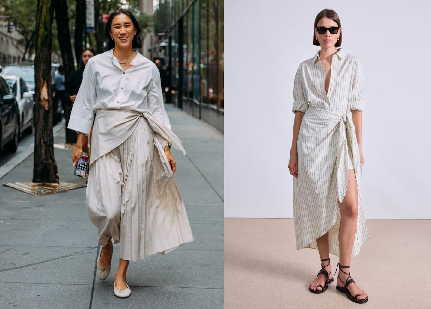 Apiece Apart’s Spring collection includes a shirt dress with a sarong skirt that reminds me of an Eva Chen street-style look I have had saved to my moodboard for years. This Banana Republic sleeveless version has similar vibes.