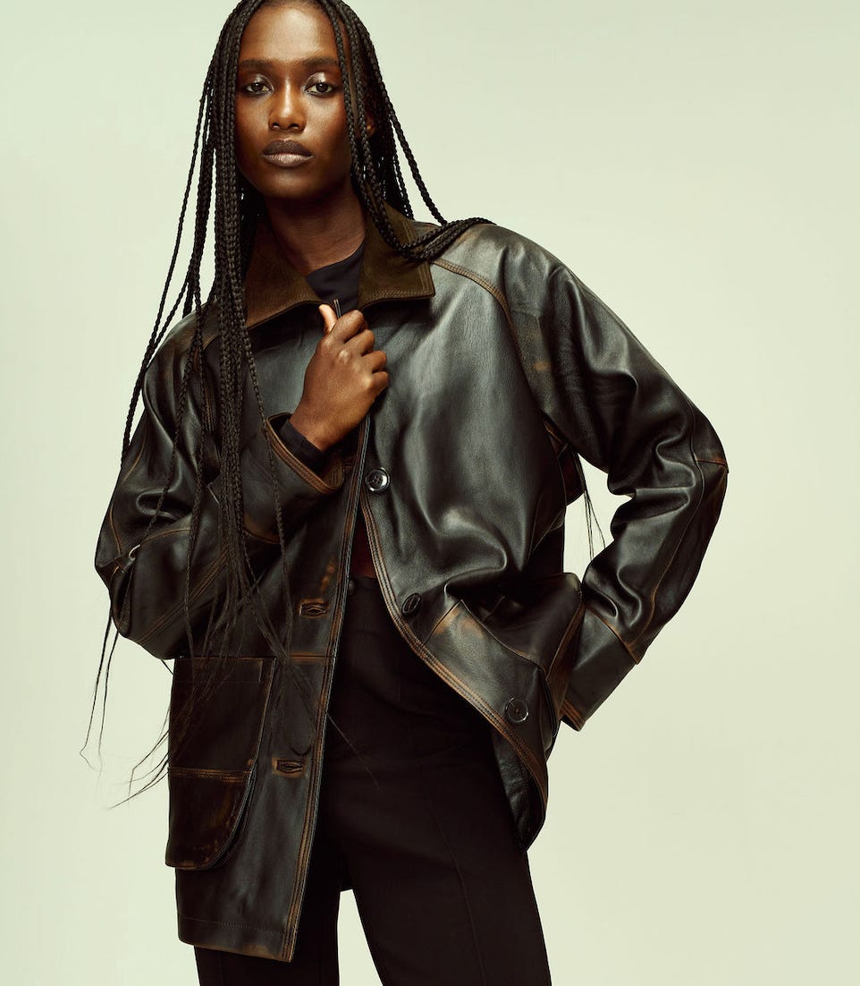 Kallmeyer's field jacket in distressed topstitched leather offers an interesting departure from the ubiquitous versions flooding the market. This season also sees their Warner blazer reimagined in lambskin and liquid twill.
