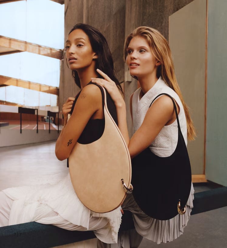 Tory Burch finally dropped the Pierced Bag, the long-awaited follow-up to their now-cult, piercing-embellished shoes. The silhouette, spotted on Chloe Fineman, Amanda Seyfried, Martha Stewart, and nearly every front row guest at their Fall ’25 show, has been hotly anticipated. It’s available in four colours on Tory’s site, while SSENSE carries the sold-out dark cabernet shade as well as an exclusive weathered tan. It’s a big week for the brand and the retailer, who also partnered on the exclusive launch of the newly revisited Reva flat. This will register instantly for anyone who remembers the early 2000s as an era of ballerinas, bootcut jeans, and giant It-bags. As