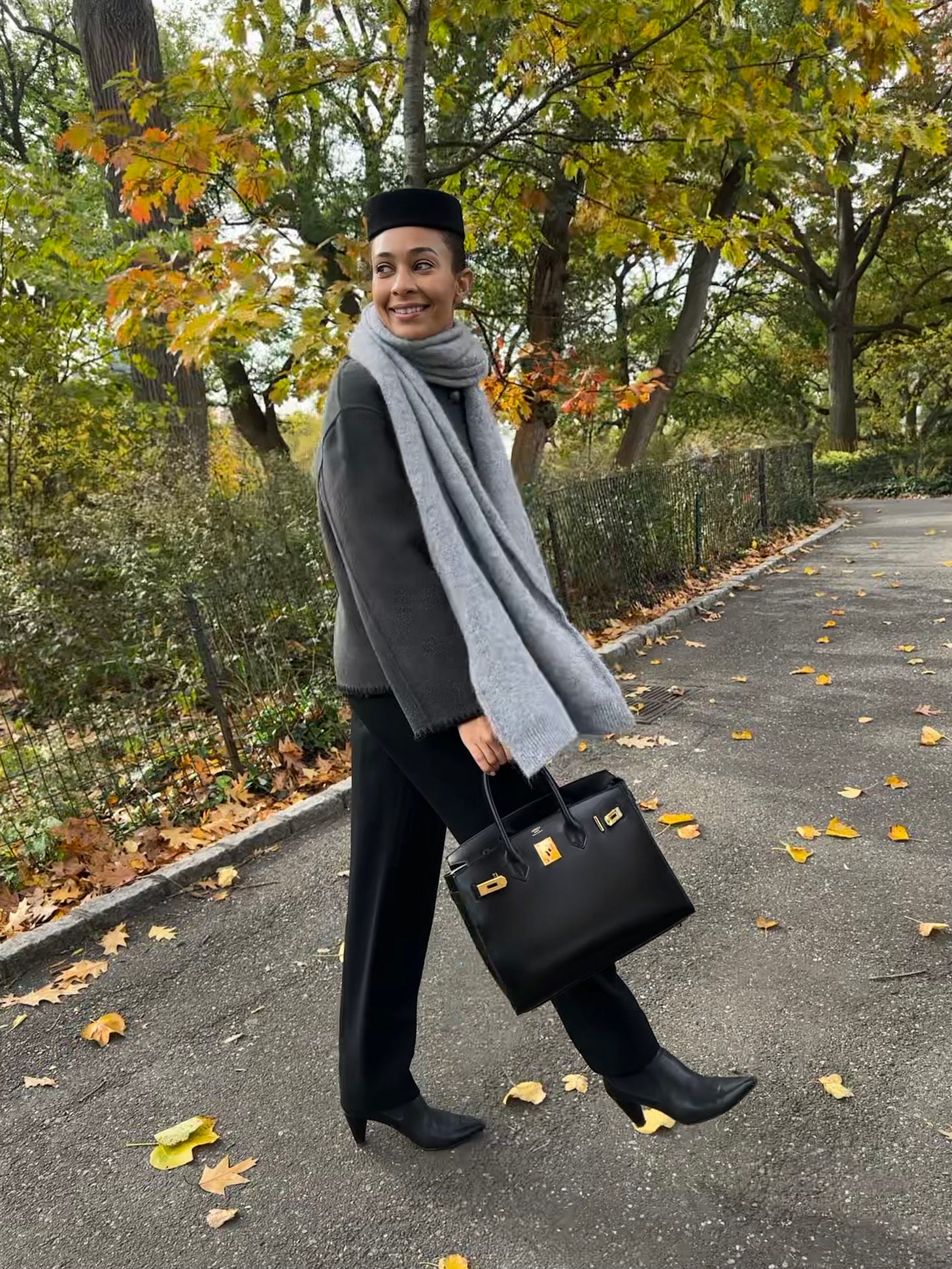 ‘On this day, I went to the office, then to an event at the Armani store, and finished the night with drinks at the lounge by Casa Tua at the Surrey Hotel uptown. Of the pieces I’m wearing, the trousers are probably the most sentimental. My aunt-in-law, who passed away earlier this year, was a veritable style maven and almost exactly my size. She and I bonded over fashion, and before she died, she passed on a selection of pieces to me, including these vintage Armani trousers. They have a high waist and tapered shape. They don’t make them like this anymore. The other special piece is my Birkin 30. I purchased this in Paris while my husband and I were there on our mini-moon. I think the phrase “investment piece” is a bit overused, but I bought this knowing I would pass it down to my children or family, just as my aunt did. I love actually wearing this bag—lugging around my laptop and whatever else—accumulating wear and building up the patina.