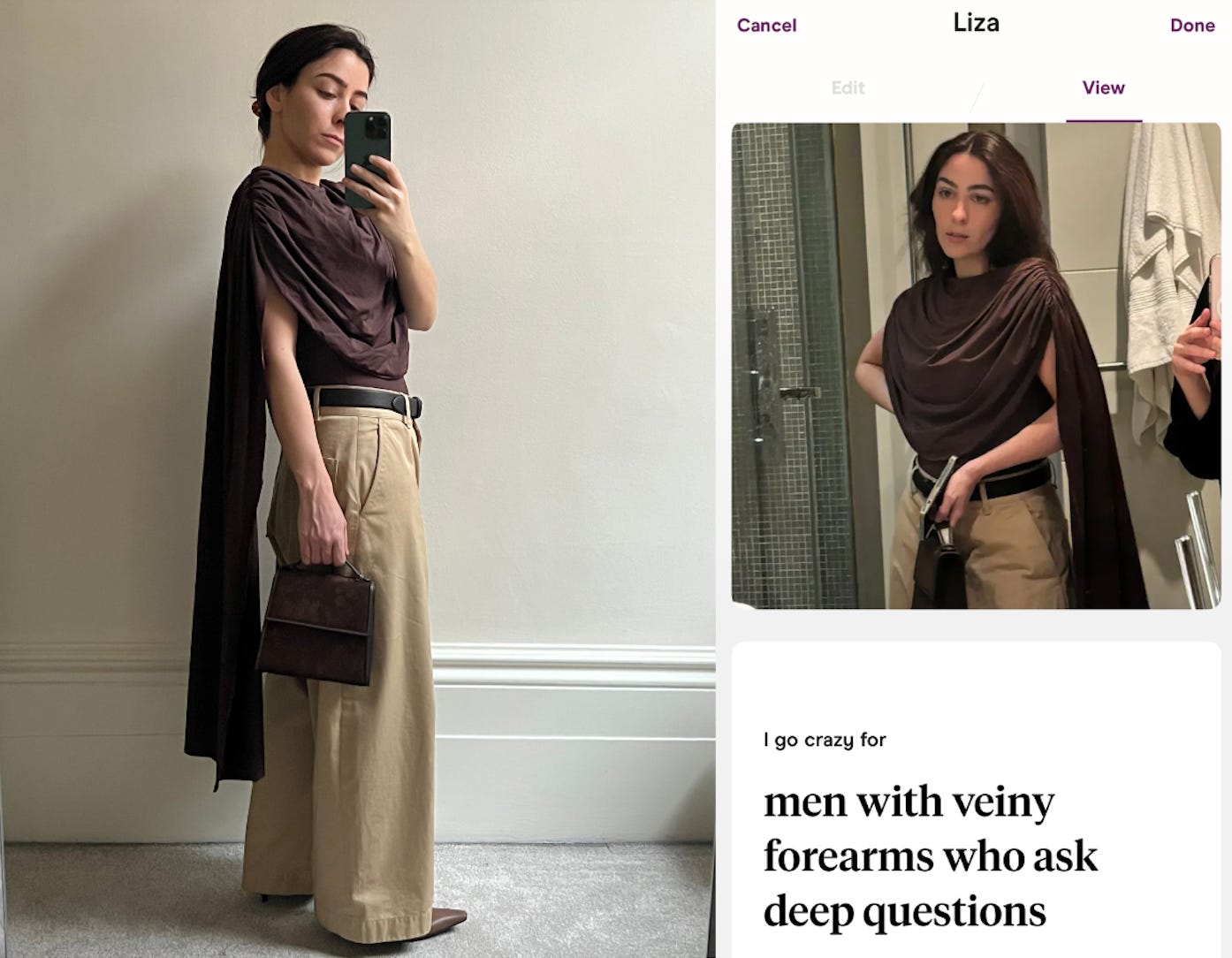 I was surprised by how many guys noticed that the pants I wore on our date were the same ones I wore in one of my Hinge pictures. I’m also consistently surprised by how many of these men - at least the ones I choose to date - care about fAsHiOn. They pay a lot of attention to how they dress and say they appreciate it when a romantic partner has a strong style identity. I definitely do not remember that being the case in my twenties.