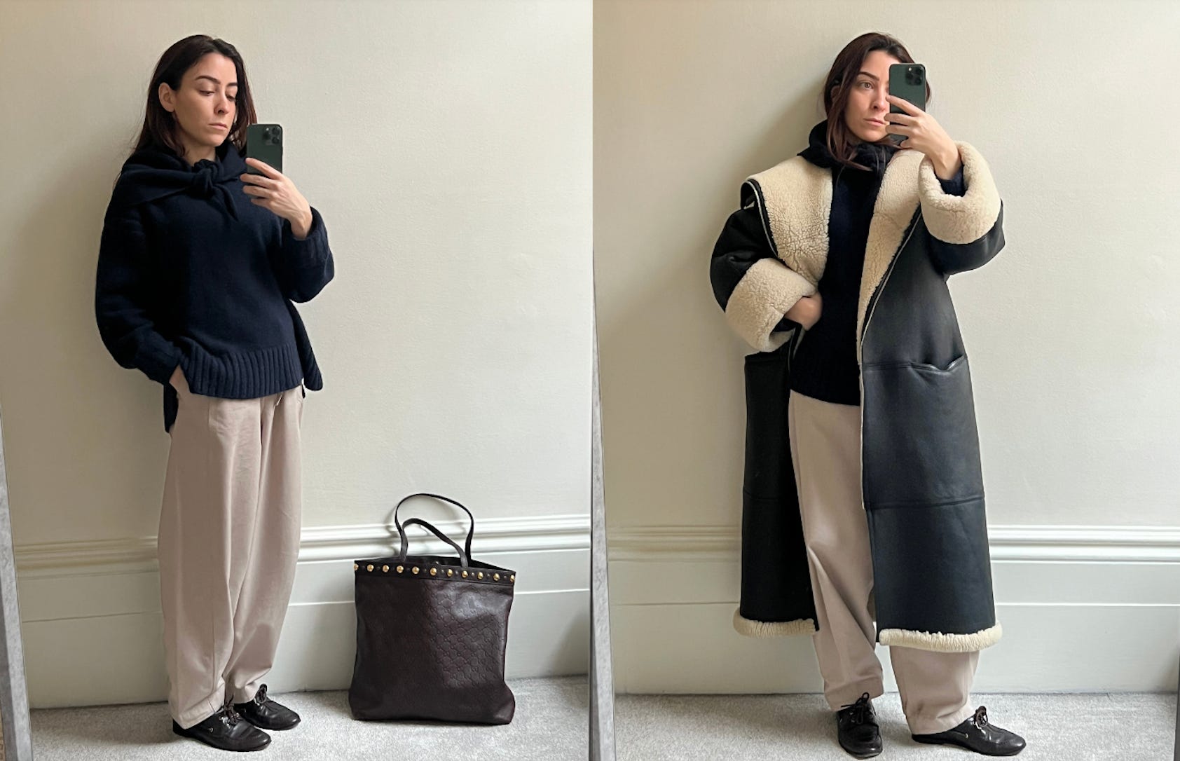 I wanted a go-to outfit for first dates so nothing would add to the stress of it. There is no piece of clothing in my closet that I cherish more than my Studio Nicholson Chalco pants, so they had to be a part of it. They are extremely wide, with a dropped crotch, and tell a story of how I like to dress: a little boyish. They’re as far from conventionally flattering as trousers get. That felt right. Firstly, because I feel sexier in oversized clothes. Secondly, because I want to show up authentically. If they like a hyper-feminine style, they know they won’t get that from me from the start. The jacket complemented the pants perfectly. It’s short, so I wear it as a top. Both pieces have a lot of character, but I feel entirely myself and comfortable in them. When I posted a photo of this look on Substack Notes, someone in the comments summed it up better than I could: ‘casual, with your own personality stamped on it’.